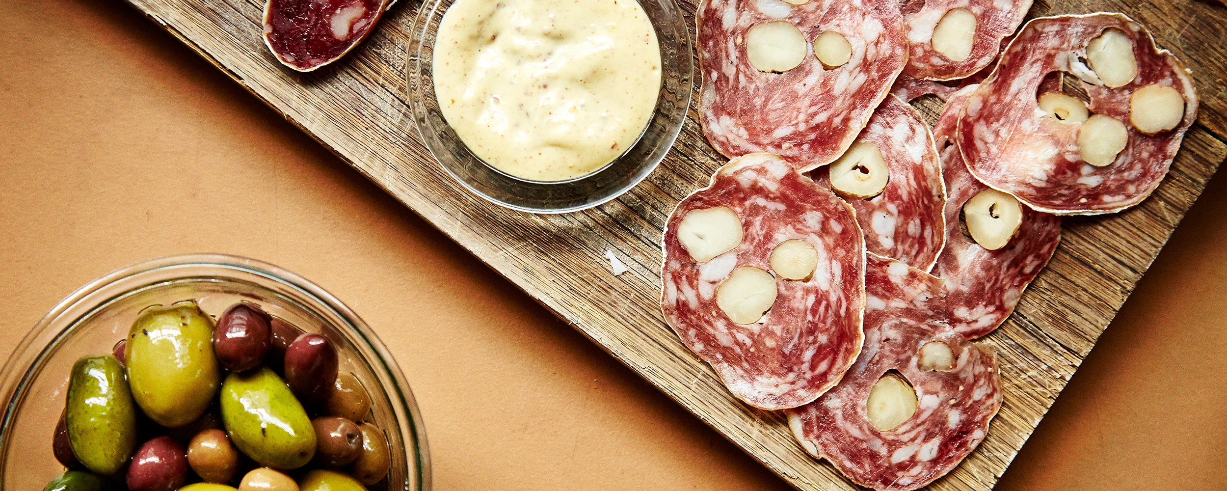 I baren kan du ud over vin fra tankene, nyde vores udvalg af oste og charcuteri med en bid brød, samt mindre snacks som nødder og oliven. Vi serverer et lille udvalg af enkle veltilberedte retter fra hele verden.
